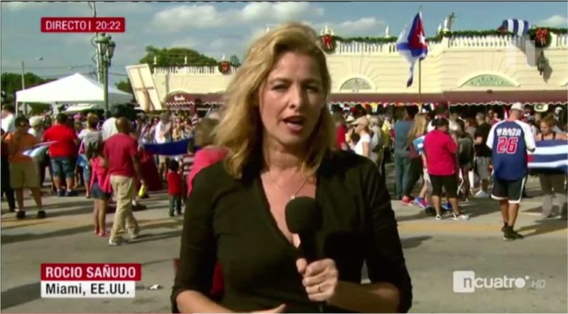 Rocío Sañudo comenzó a trabajar como Periodista y Reportera de Imagen desde Miami para “Noticias Cuatro” en noviembre de 2016, habiendo realizado numerosas Conexiones en Vivo desde entonces y en la actualidad: la muerte del dictador Fidel Castro, el tiroteo en el Aeropuerto Internacional de Fort Lauderdale, el paso del Huracán Irma por la Florida.. entre otros acontecimientos